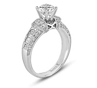 Diamonds: Round .25 Carat / Bagguette .25 Carat (not including 1 Carat center stone) The Cascade bridal collection - a promise of eternal love. Vanna K Fine Jewelry is famous for its exclusive designs and expertly hand-crafted micro-pave diamond engagement rings.